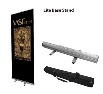 Our user-friendly portable display stands include your printed graphic and all come with a free carry bag. Just pull it up and slot the pole into position, so easy a monkey can do it.